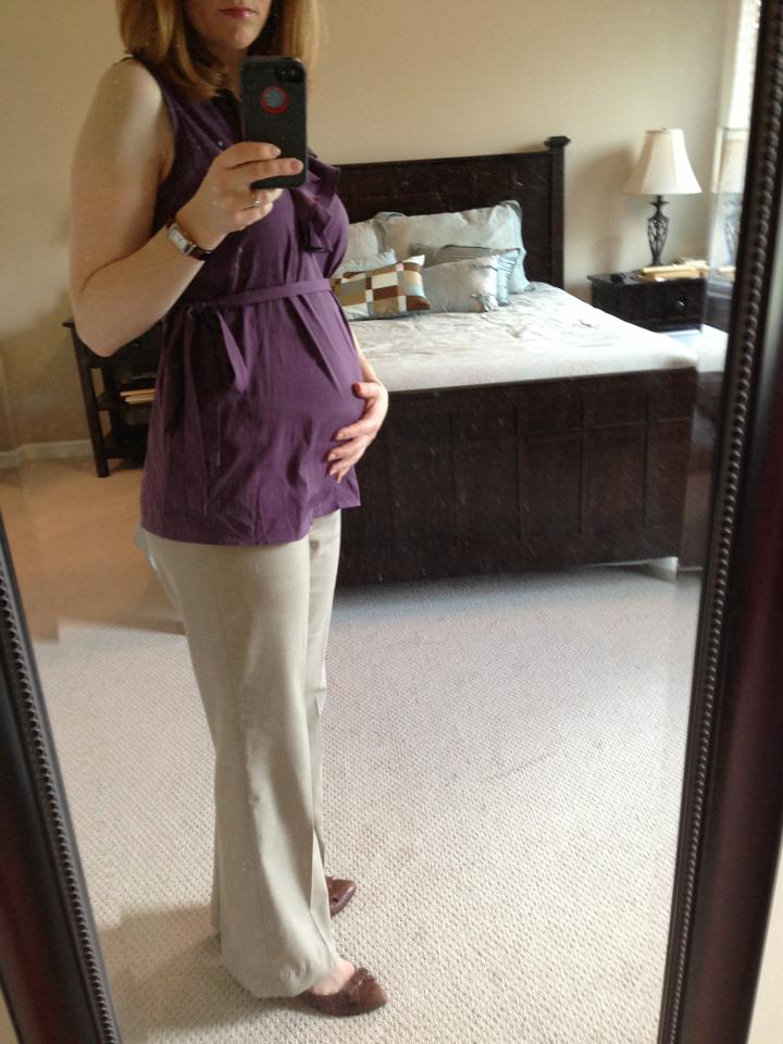 I recently received a compliment about my clothes that I’d like to thank you for. A few weeks ago I preached at my husband’s church in their contemporary service and helped lead worship at the traditional. We did not wear robes in either service (summer in the south). After the contemporary service a professional woman i know told me that she wished I could tell all clergy women in our Conference area how to dress. I was very intentional about what I chose to wear, being a young female (and 5 months pregnant then!). I snapped some pics to share with you in the hopes you might have a proud auntie moment. I included a cute bump pic just for fun! Enjoy!